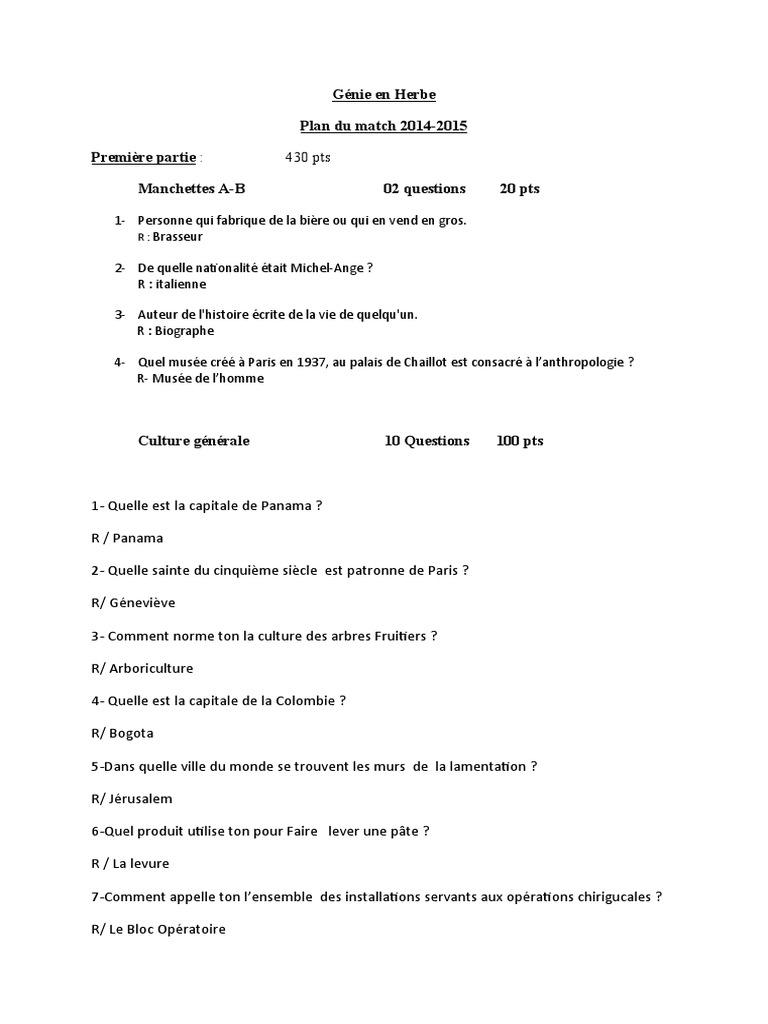 Questions genie en herbe diar es saada. Les PDF peuvent être dans une langue différente de la votre. Genie en herbe 1 Note moyenne.