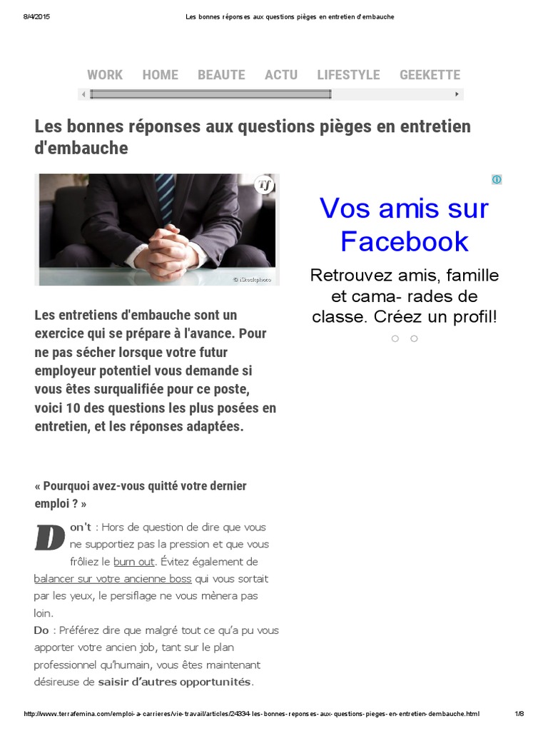 Les Bonnes Reponses Aux Questions Pieges En Entretien D Embauche Pdf Entretien D Embauche Cognition